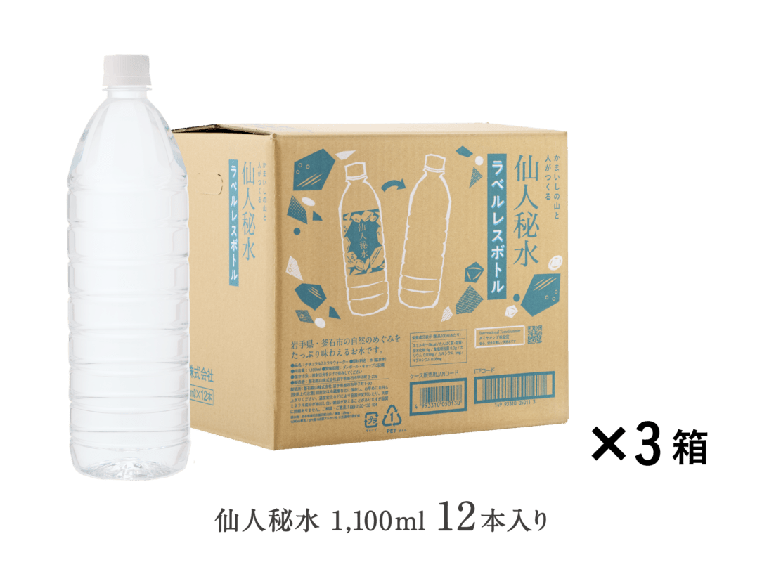 仙人秘水ラベルレス1100ml(12本入)×3箱